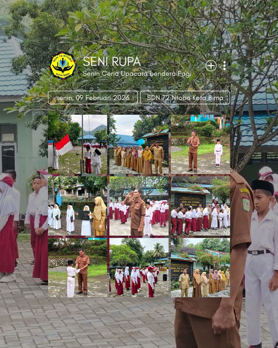 SENIRUPA (Senin Ceria Upacara Bendera Pagi) merupakan kegiatan rutin yang dilaksanakan setiap hari Senin di SDN 72 Ntobo Kota Bima. Kegiatan ini bertujuan untuk menumbuhkan rasa cinta tanah air, meningkatkan kedisiplinan, serta membentuk karakter peserta didik sejak dini melalui pelaksanaan upacara bendera.