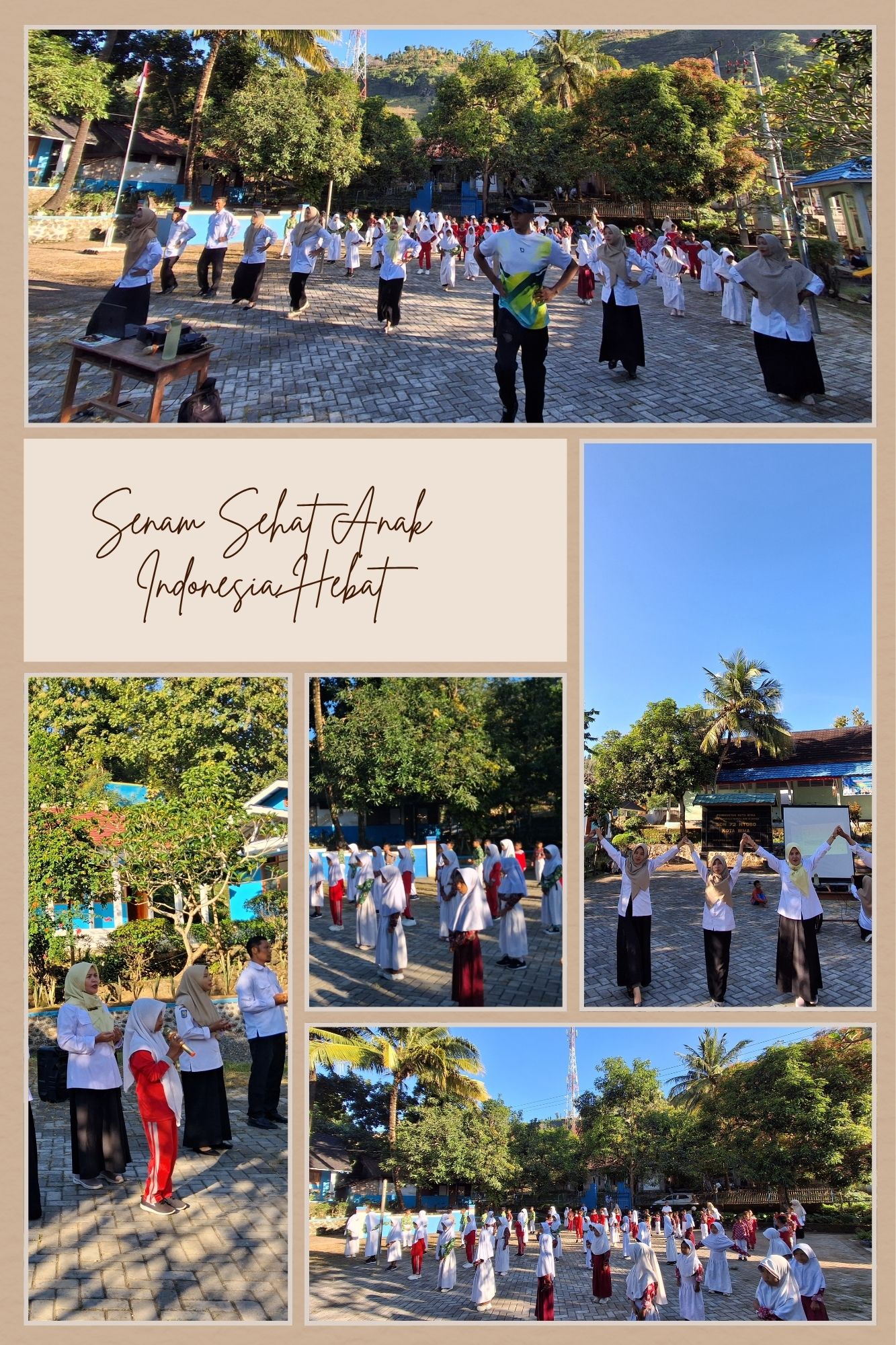 Suasana halaman sekolah tampak meriah dan penuh keceriaan. Para siswa terlihat gembira mengikuti setiap gerakan senam, sementara guru-guru turut memberikan contoh dan semangat kepada peserta didik.